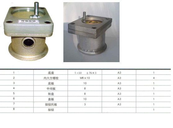 呼喚按鈕,又叫抗爆門鈴,產(chǎn)品包括一帶容置腔的底座,一按鈴設(shè)置在所述容置腔內(nèi),一襯板蓋在所述的底座上,且該襯板上對(duì)應(yīng)按鈴的按鈕處設(shè)有一通孔,一帶有通孔的上蓋板蓋在襯板上,且在襯板和上蓋板之間形成一容置槽,一轉(zhuǎn)盤可轉(zhuǎn)動(dòng)的設(shè)置在容置槽內(nèi)并且部份露在蓋板的通孔處,在轉(zhuǎn)盤上開設(shè)有一轉(zhuǎn)盤轉(zhuǎn)動(dòng)至適當(dāng)位置時(shí)與襯板上的通孔對(duì)應(yīng)的通孔,所述的轉(zhuǎn)盤上另向外設(shè)有一手柄;采用上述技術(shù)方案,由于將按鈴設(shè)置在防震防爆的底座內(nèi),即使有強(qiáng)烈的外力沖擊也無法損壞到電按鈴,保證其安全性,使用時(shí),轉(zhuǎn)動(dòng)手柄,讓轉(zhuǎn)盤上的通孔與襯板上的通孔相對(duì)應(yīng),手便可伸入到底座內(nèi)按動(dòng)按鈕讓里面的人知道,及時(shí)打開密閉門。